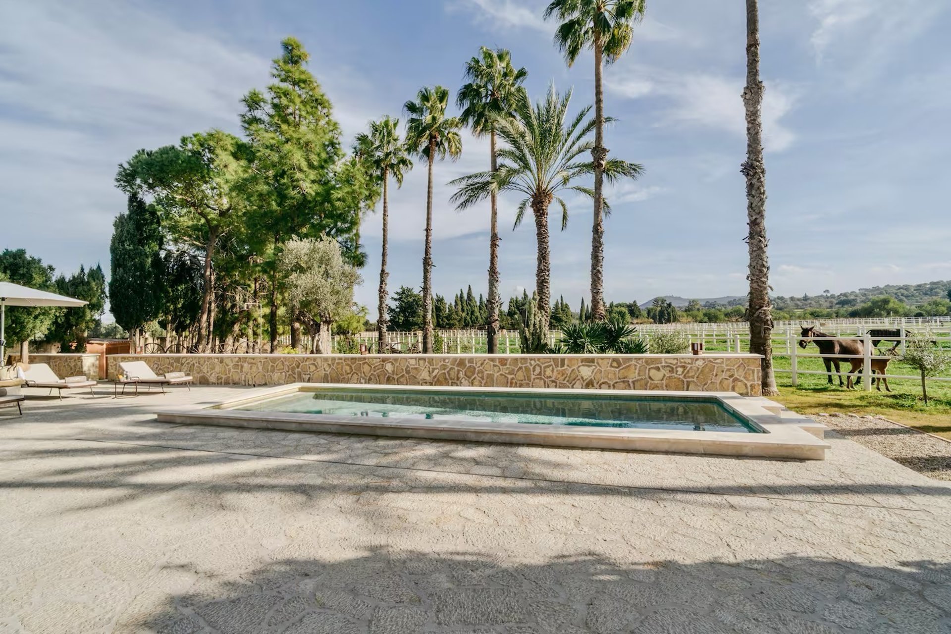 Olvida las vistas estáticas. En Ca'n Frontera, el paisaje respira contigo. Aquí, el frescor de la piscina de agua salada convive con la nobleza de los caballos que pastan a pocos metros. Un refugio en Selva donde la frontera entre tu descanso y la naturaleza se desdibuja para que vuelvas a conectar con lo esencial.