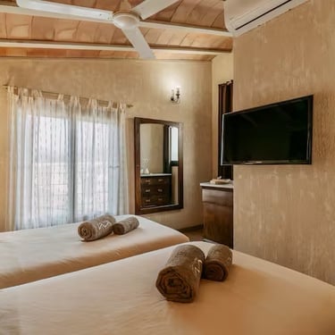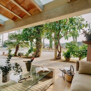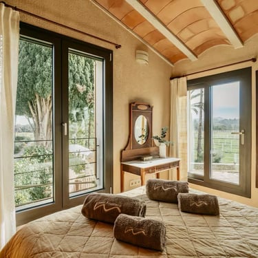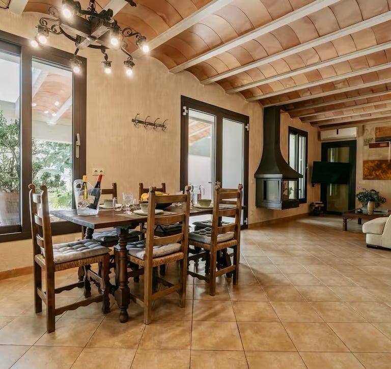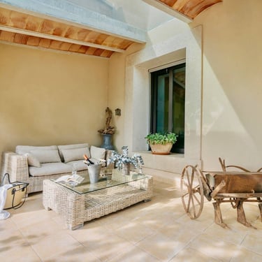 Cruzar el umbral de Ca’n Frontera es dejar la prisa fuera. Aquí, la historia no está en un museo, sino que te envuelve. La robustez de la puerta original y las herramientas de antaño dialogan ahora con la suavidad de tejidos naturales y un confort contemporáneo. Un salón donde el pasado protege tu descanso y cada viga cuenta un relato de la Mallorca rural.